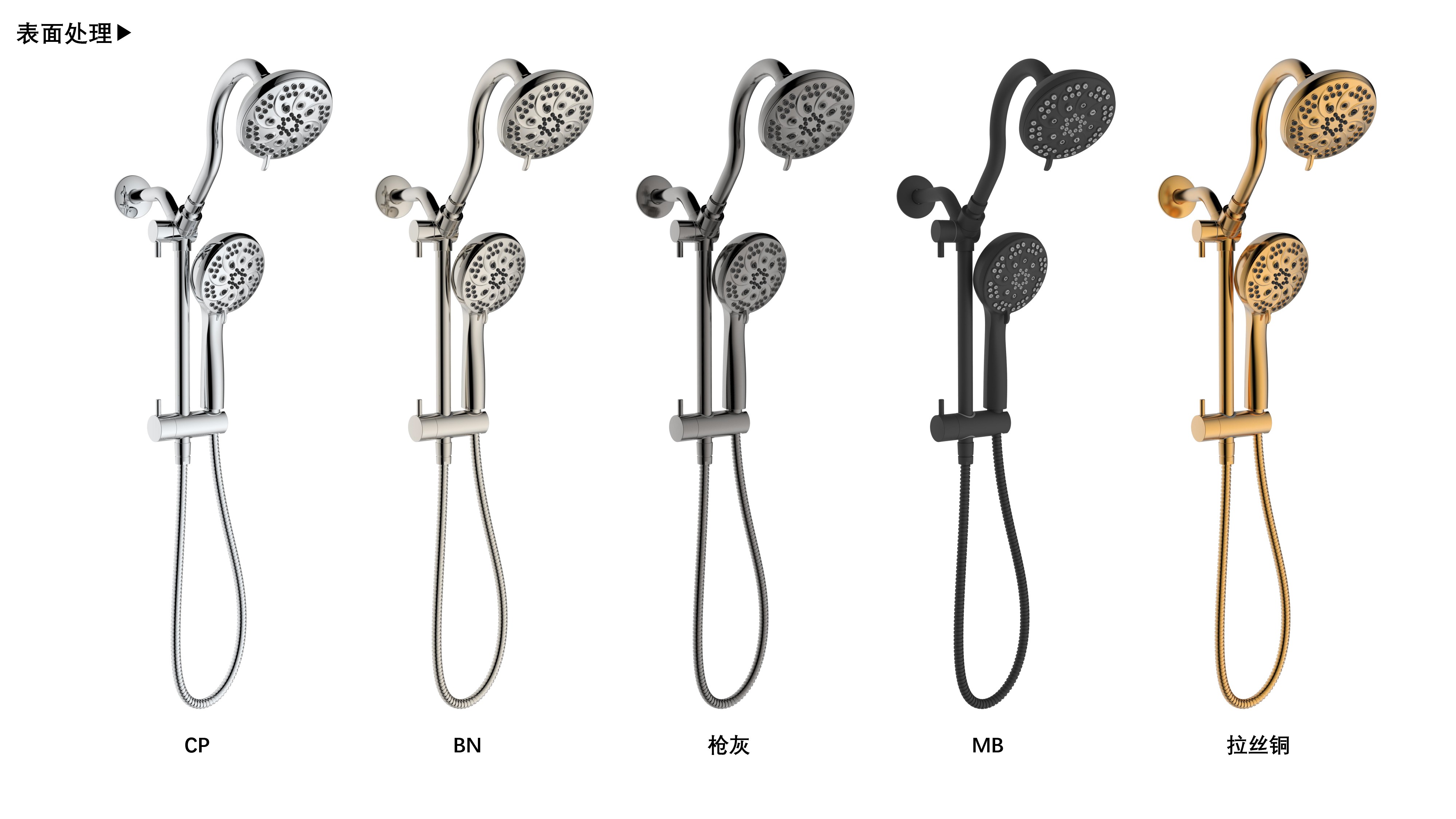 上出水彎管套裝;頂噴內(nèi)置球頭,可實現(xiàn)多角度旋轉(zhuǎn)調(diào)整;把手切換頂噴出水、花灑出水;轉(zhuǎn)動把手調(diào)節(jié)滑座高低;8功能出水花灑