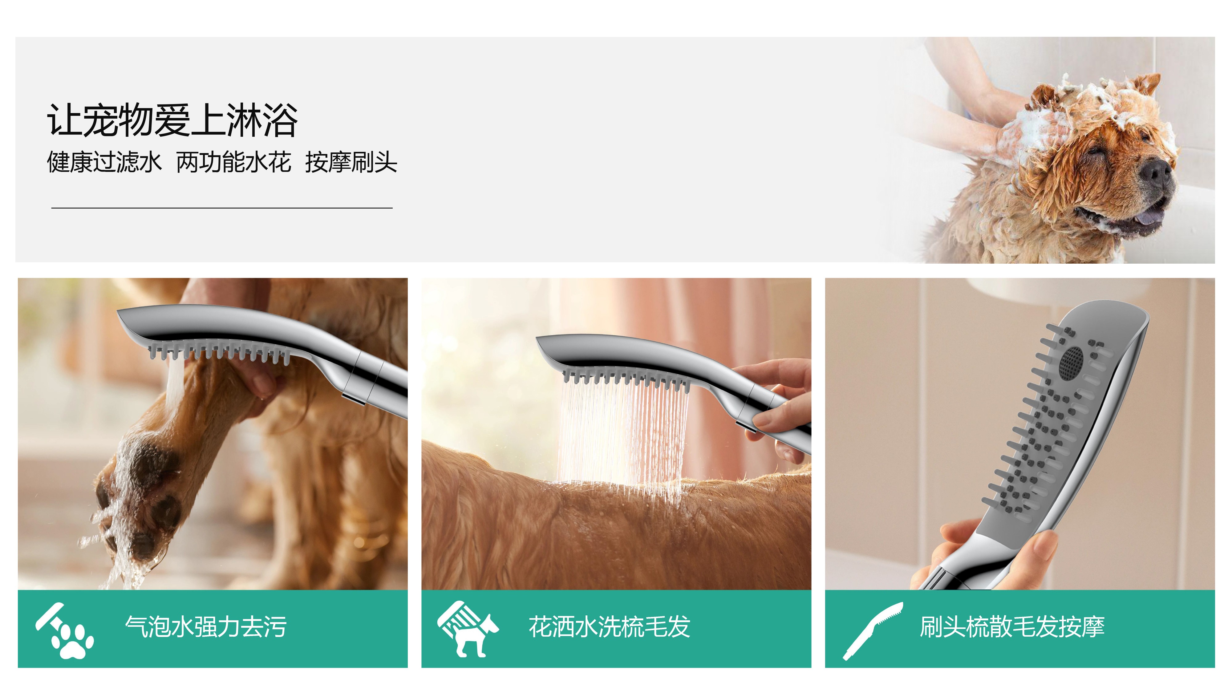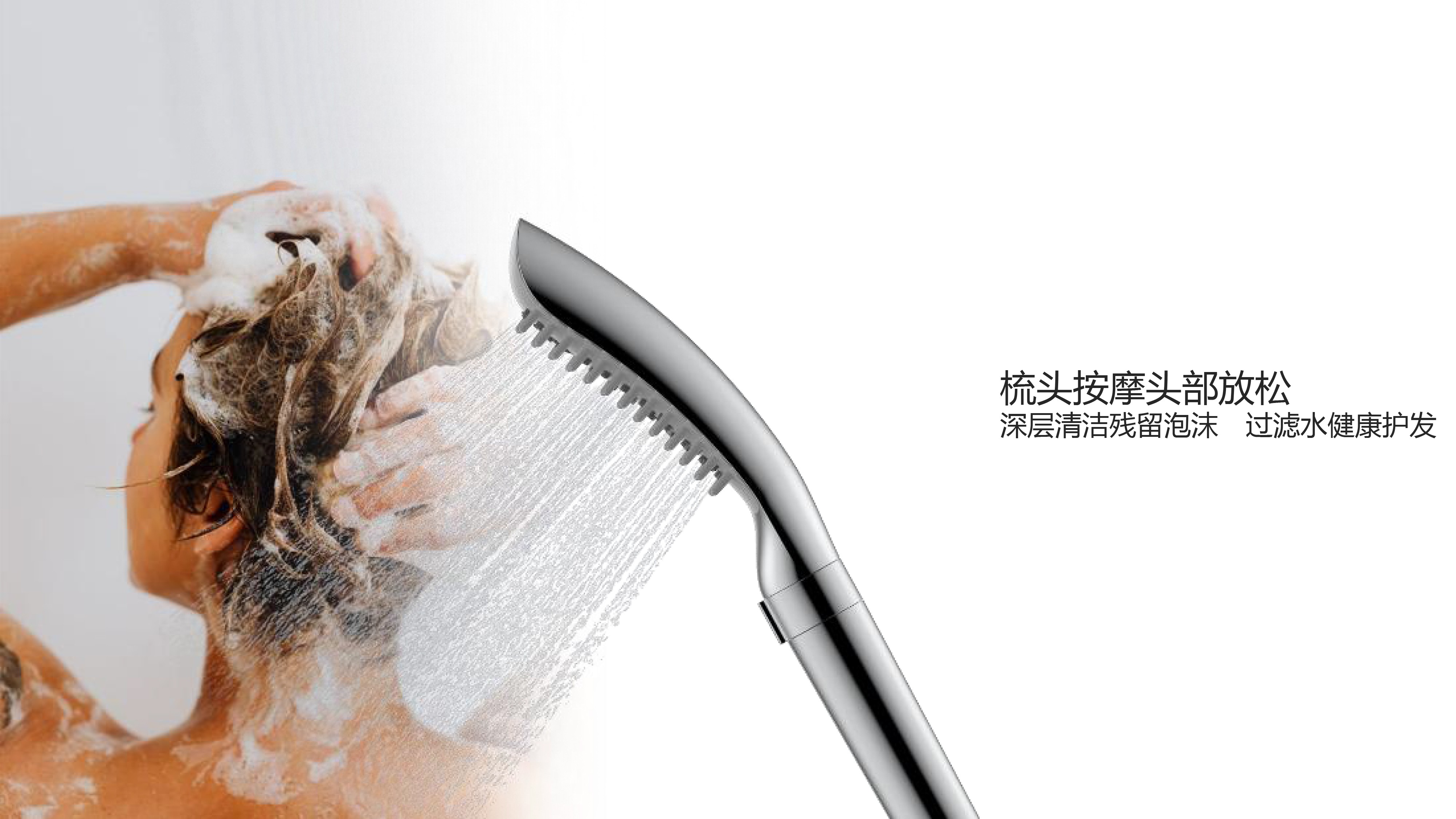 Deep cleaning, filtering water source, enjoying comfortable and relaxing bathing experience; Distinctive dial key to pause water; Comb, massage and relax the head, deeply clean the residual foam; The filter element can be seen through the window, and the use condition is clear at a glance; Grip geometric shape texture design, new era texture aesthetics